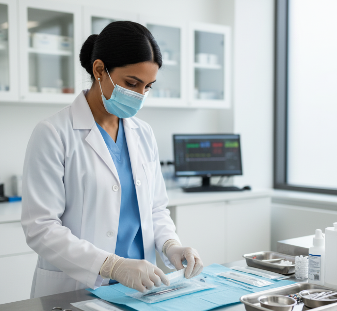 All insertion supplies are single-use and come in sterile packaging. Catheters, tubing, and connectors get opened in front of the patient and discarded immediately after use. This eliminates any cross-contamination risk.